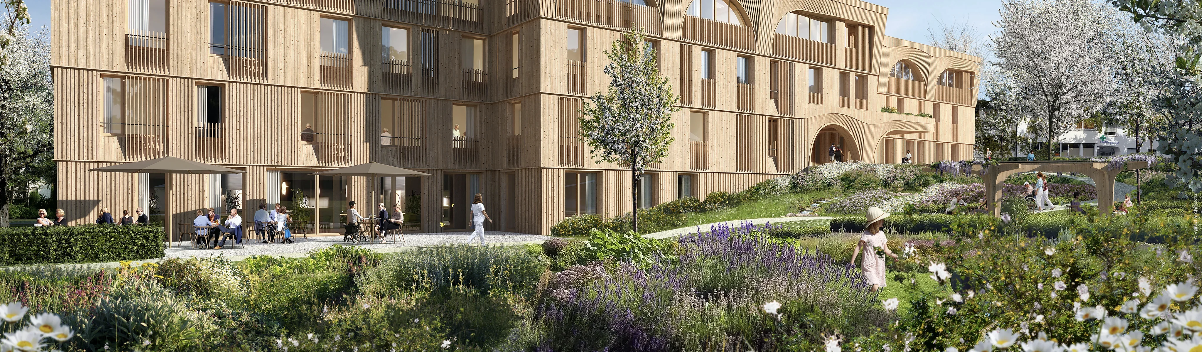 Openbaar tuinpark rond de nieuw te bouwen kliniek